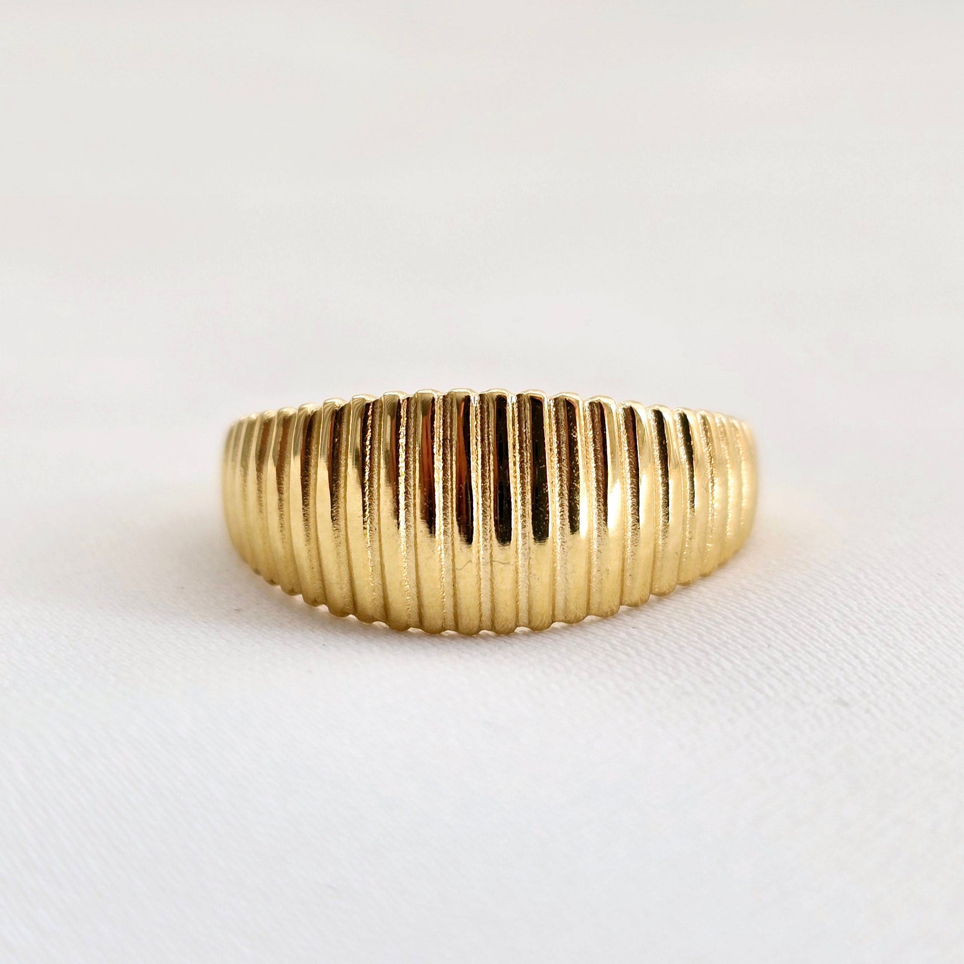 Soyez élégant avec la bague HABY en acier inoxydable. Ses imprimés rayures lui donnent un look moderne et tendance. De plus, sa taille ajustable vous permet de l'adapter à votre doigt pour un confort optimal. Un must-have pour toutes les occasions.