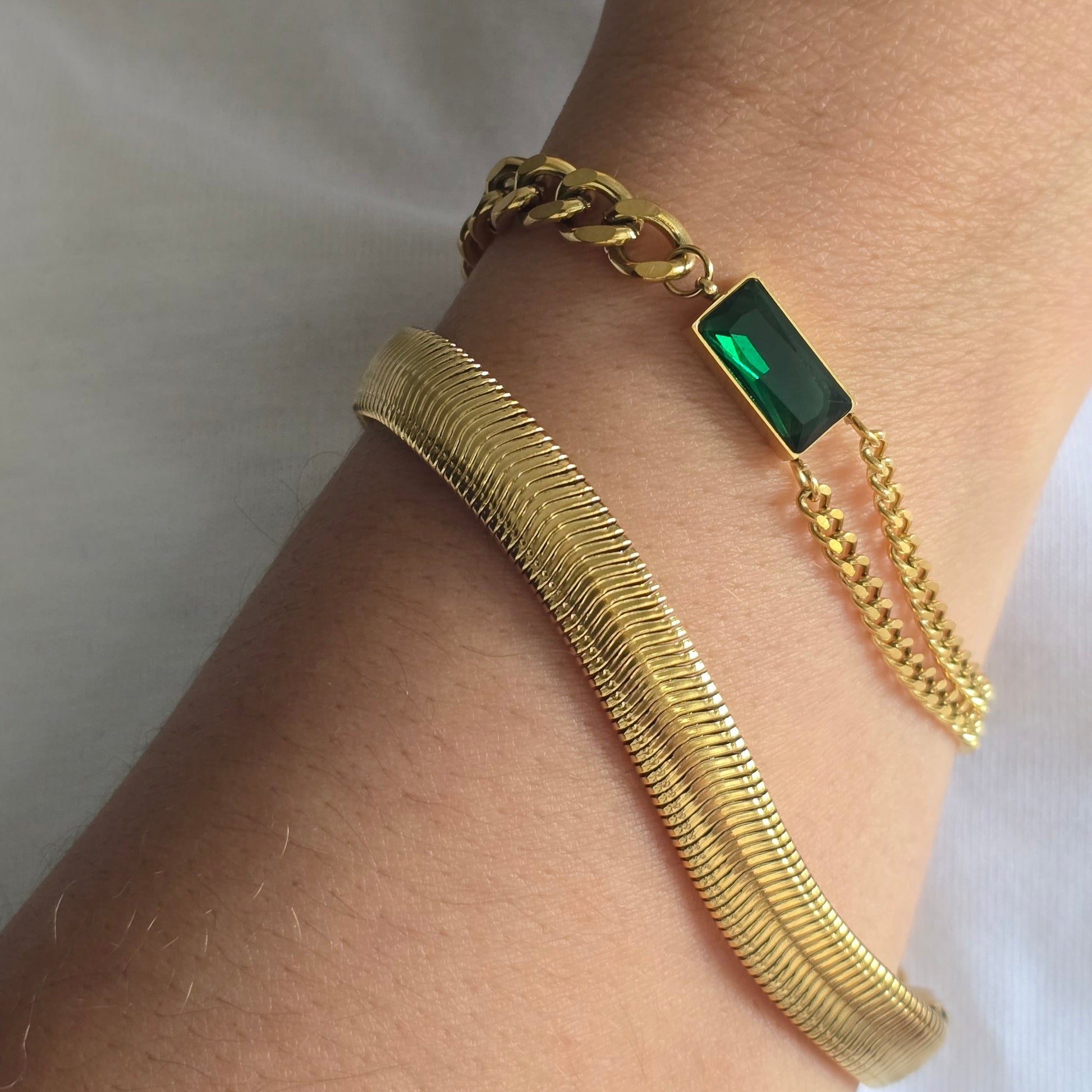 Le bracelet COLLEEN est en acier inoxydable plaqué or 18 carats est un accessoire parfait pour apporter une touche de personnalité à votre look.