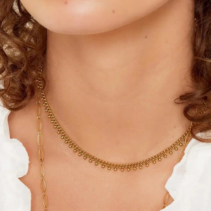 Le collier IRIS est en acier inoxydable avec pendentifs en forme de points est un accessoire élégant qui saura ajouter une touche de style à n'importe quelle tenue.